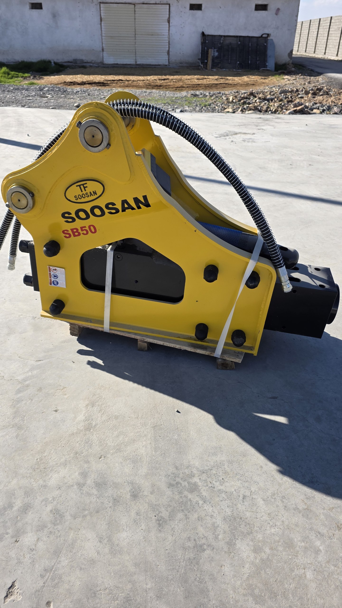 Soosan SB50 gidromolot demontaj ishlari uchun: beton buzish, asfalt yorish va qattiq tuproqda ishlash. Ekskavator massasi va gidroliniya parametrlariga mos tanlanadi.